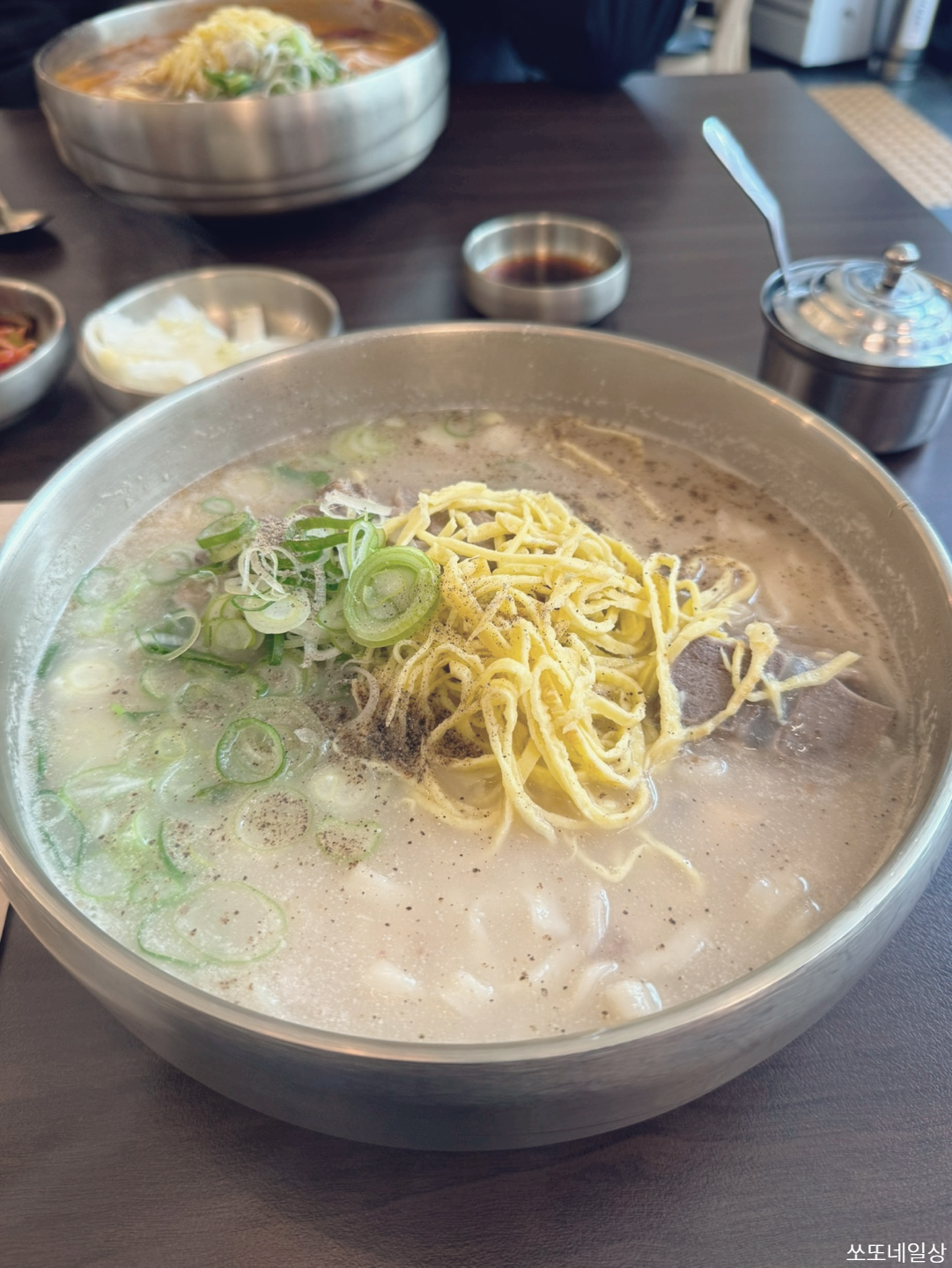 제가 시킨 뼈칼국수인데요. 육수가 사골국물이라 그런지 진하고 간이 딱 맞더라고요.