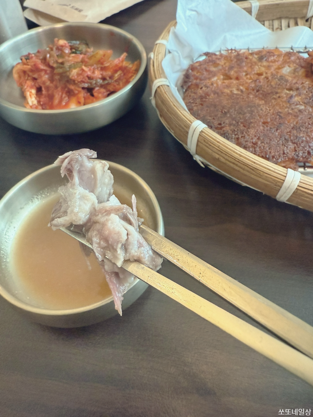 고기 찍어먹으라고 같이 나온 소스에 찍어서 먹어도 맛있고 그 소스를 살짝 찍어서 칼국수와 함께 먹어도 맛있었어요.